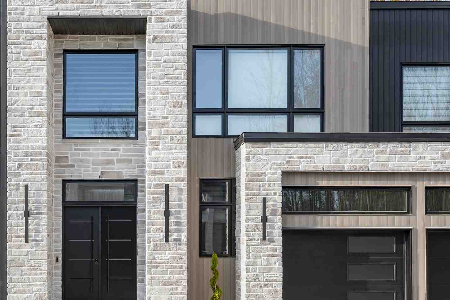 High-contrast color patterns are becoming a defining feature of modern exterior siding ideas. Pairing light stone or masonry with darker siding creates visual separation and highlights architectural elements without overcomplicating the design. This trend is commonly seen where black, charcoal, or deep brown accents are combined with lighter exterior siding options to frame windows, entryways, or vertical sections of the façade.